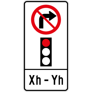 P-115-3 Virage à droite interdit au feu rouge avec heure